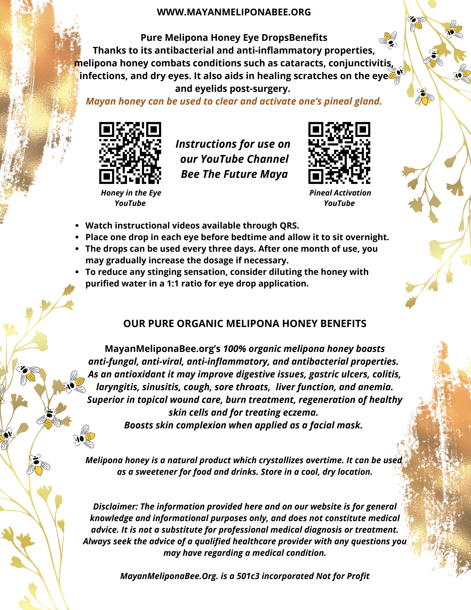 Experience the rare and precious Blessed Mayan Melipona Honey, a 100% pure organic honey sourced from our Melipona beecheii bees of the Yucatan. Discover the revival of Mayan tradition and the preservation of these sacred bees through MayanMeliponaBee.org’s 501(c)3 charitable project.